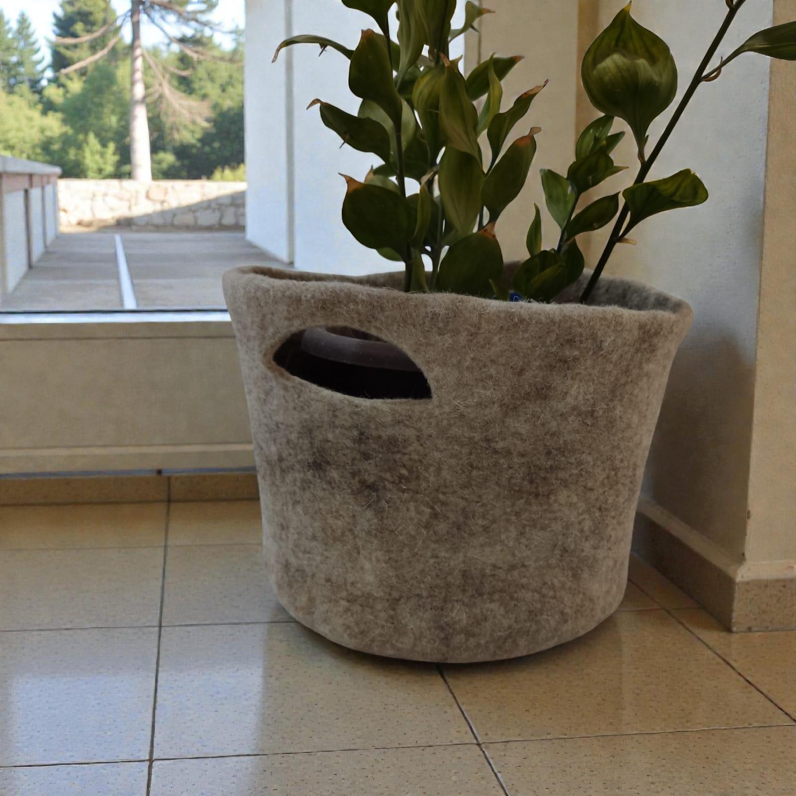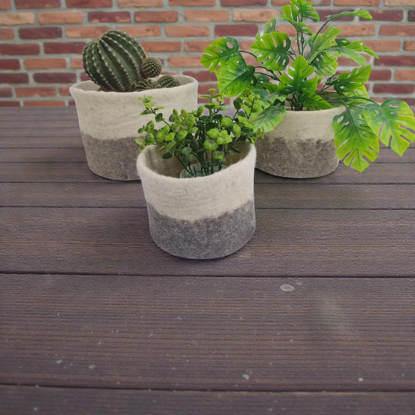 Cache-pot en laine feutrée, entièrement fait main. Doux et raffiné, il transforme vos plantes en véritables pièces décoratives, apportant chaleur et style à chaque coin de votre intérieur.